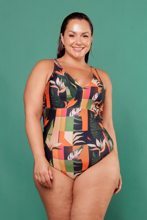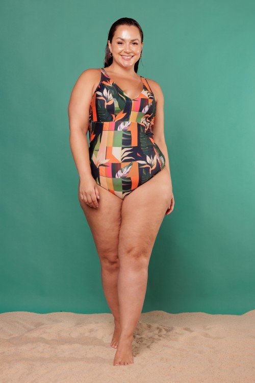 body maiô com decote em v com bojo removível vd. foliage