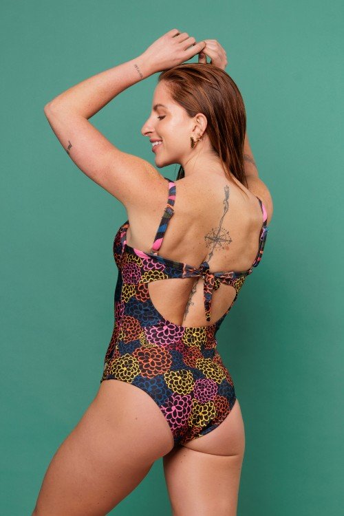 • Body Maiô Meia Taça com Aro e Bojo Estampa Jardim Noturno