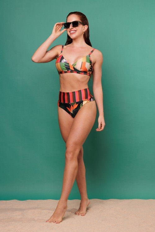• Top Biquini Cortinão Com Aro Estampa Botânica