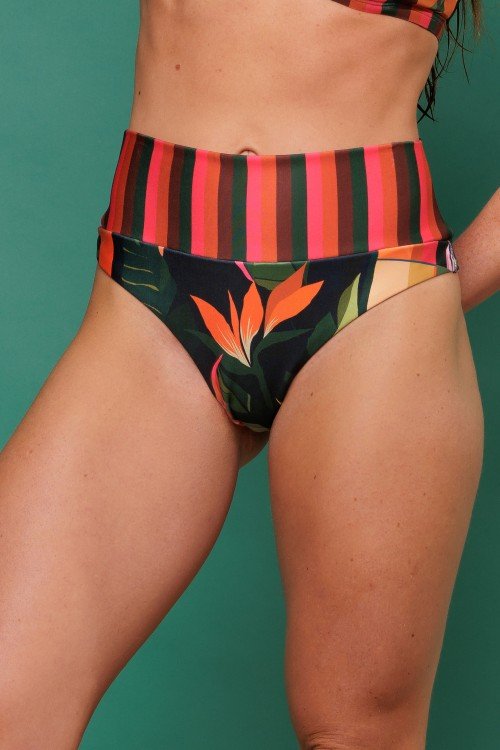 • Calcinha Biquini Cós Alto Fio Duplo Estampa Botânica