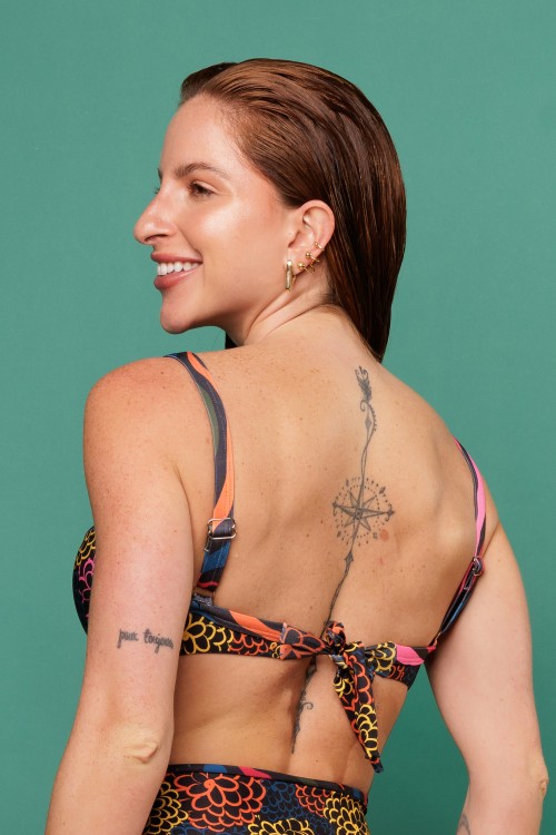 • Top Biquini Meia Taça Com Bojo Estampa Jardim Noturno
