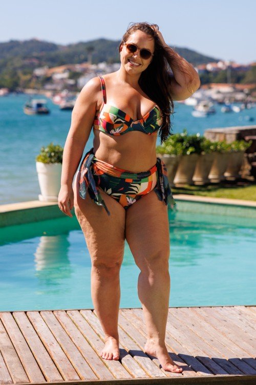 • Top Biquini Meia Taça Com Bojo Estampa Botânica