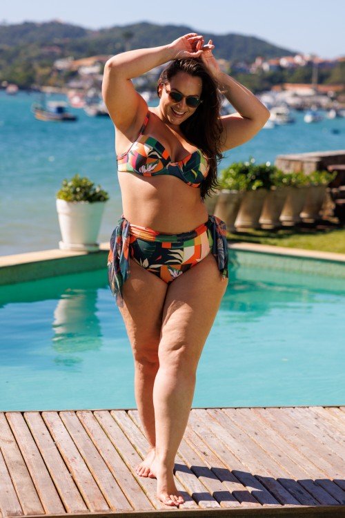 • Calcinha de Biquini Sainha 2 em 1 Estampa Botânica