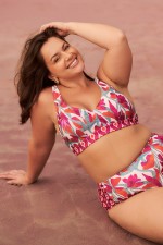 top biquini cortinão com aro estampa flores de hibiscus