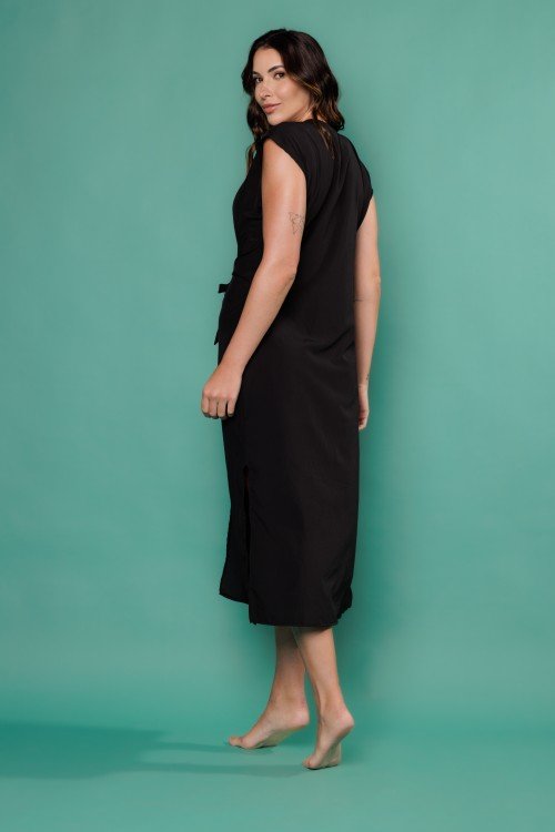 • Saída De Praia Kaftan Longo Preto