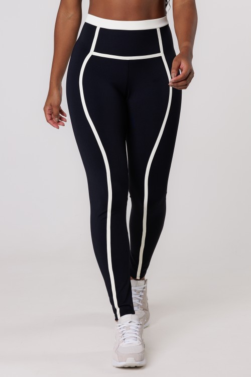 Calça Legging Bicolor Recortes Preto