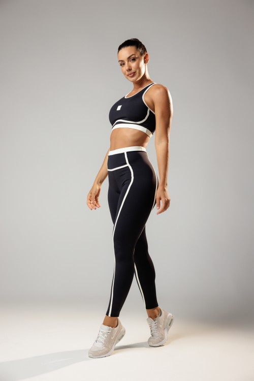 • Calça Legging Bicolor Recortes Preto