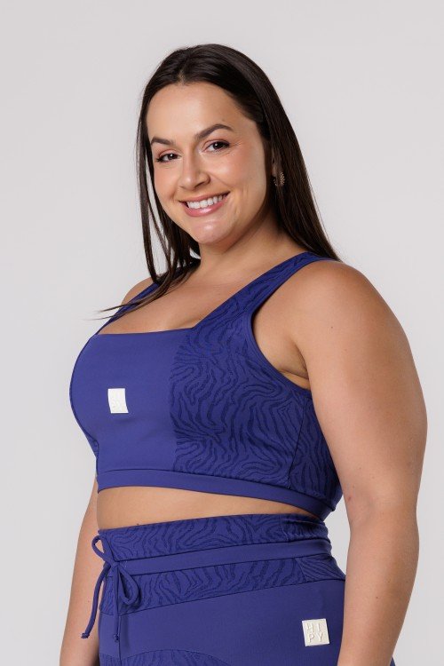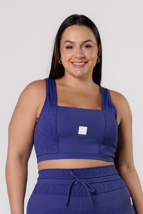 Top Fitness Decote Quadrado Com textura Azul Marinho