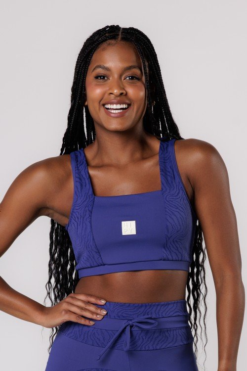 • Top Fitness Decote Quadrado Com textura Azul Marinho