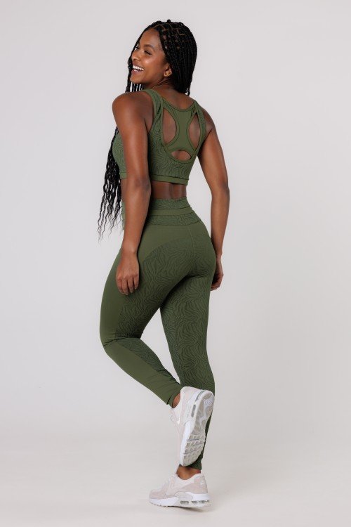 • Top Fitness Decote Quadrado Com textura Verde Escuro