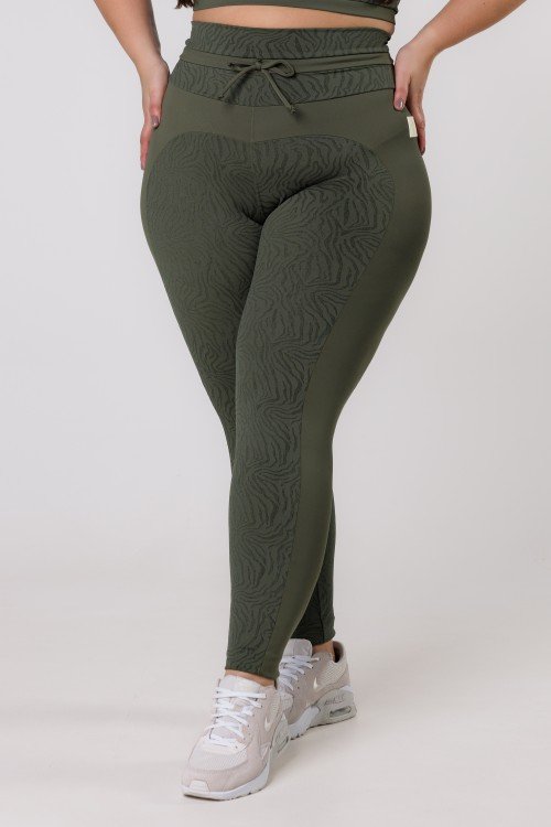 Calça Legging com Cadarço na Cintura Verde Escuro