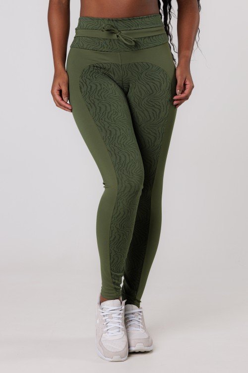 Calça Legging com Cadarço na Cintura Verde Escuro