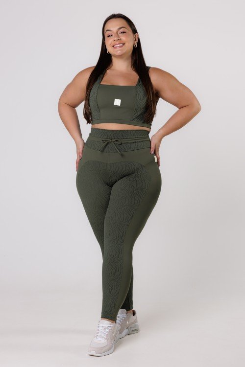 • Top Fitness Decote Quadrado Com textura Verde Escuro