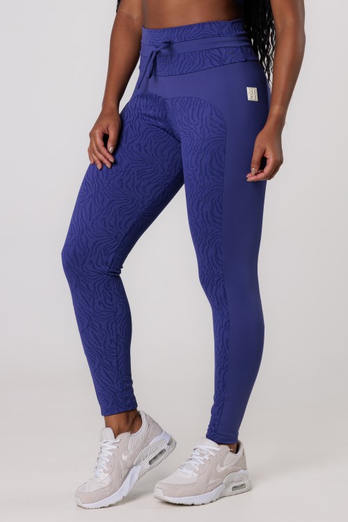Calça Legging com Cadarço na Cintura Azul Marinho