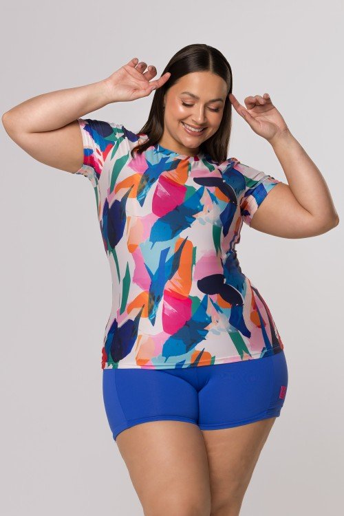 • Blusa com Proteção UV50+ Manga Curta Estampa Brisa