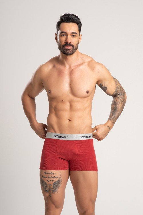 cueca boxer long fibra de bambu canelado cinza