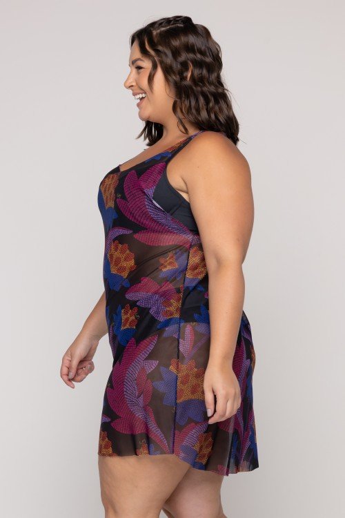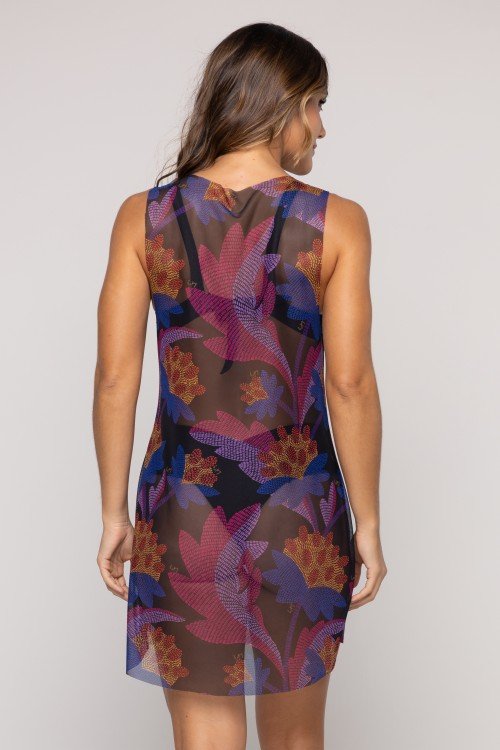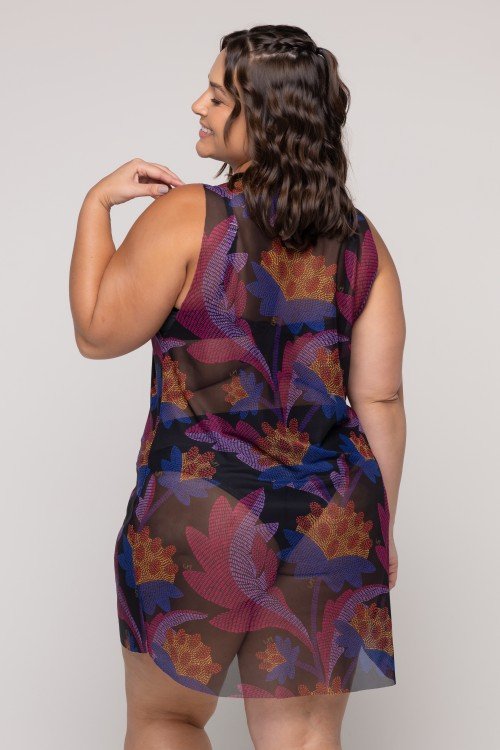 Vestido Regatão de Tule Estampa Jardim Noturno