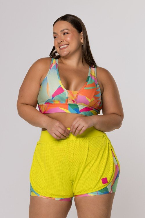 Calça Legging Azul Marinho Com Recortes e Pesponto Colorido