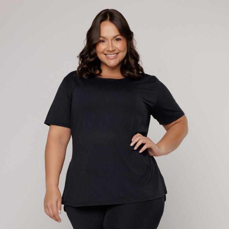 Blusa Alongada Em Gola Canoa Viscose Azul Marinho