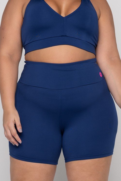 Blusa Viscose Manga Longa Detalhe no Ombro Azul Marinho