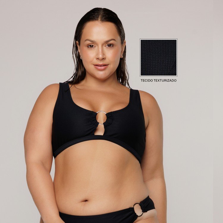 • Top Biquini Com Decote Transpassado E Bojo Removível Preto