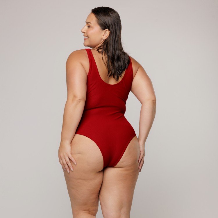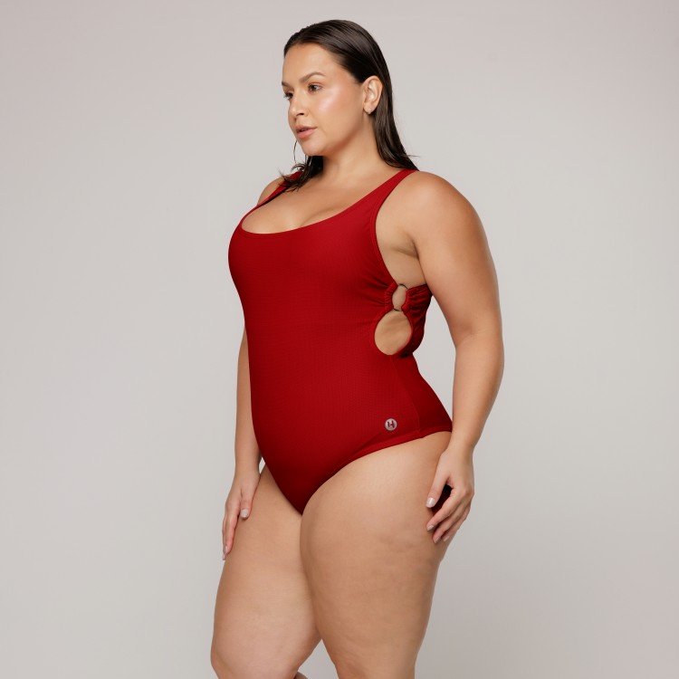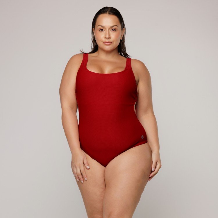 body maiô sublimado com bojo removível e detalhe em argolas e estampa de fundo verde e folhas coloridas e244