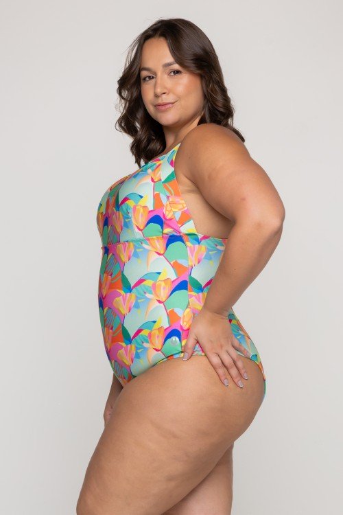 Body Maiô Decote Alto Verde Foliage