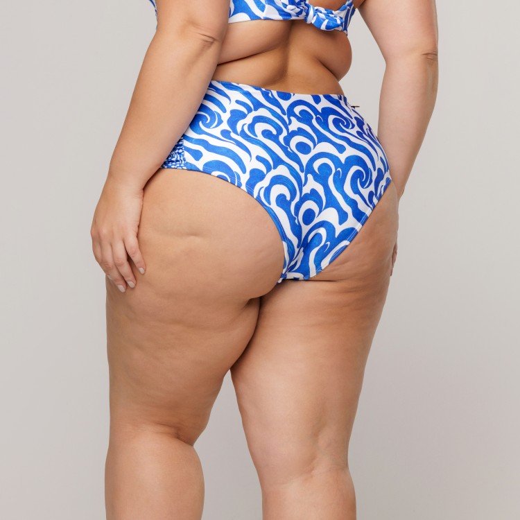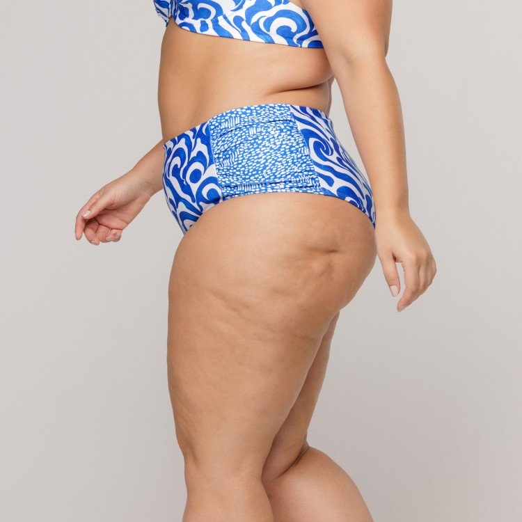 • Calcinha Biquini Cintura Alta Franzido Lateral Estampa Wave