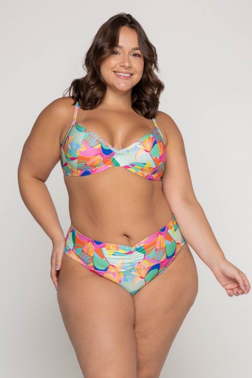 • Top Biquini Meia Taça Com Aro Estampa Solar