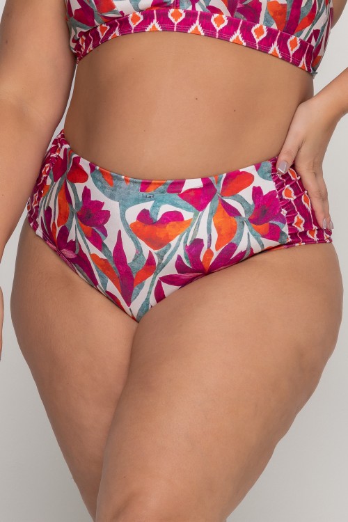 Calcinha Biquini Cintura Alta Franzido Lateral Estampa Flower