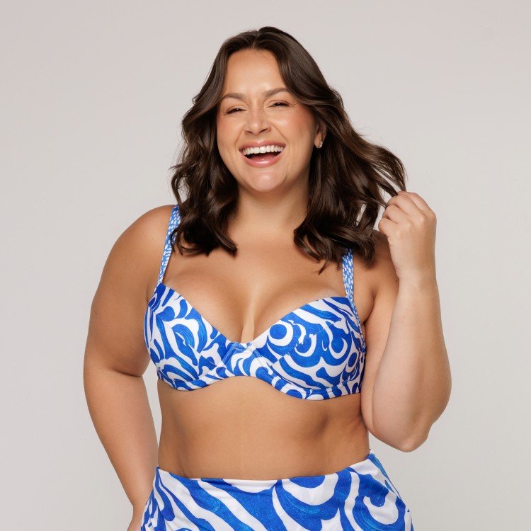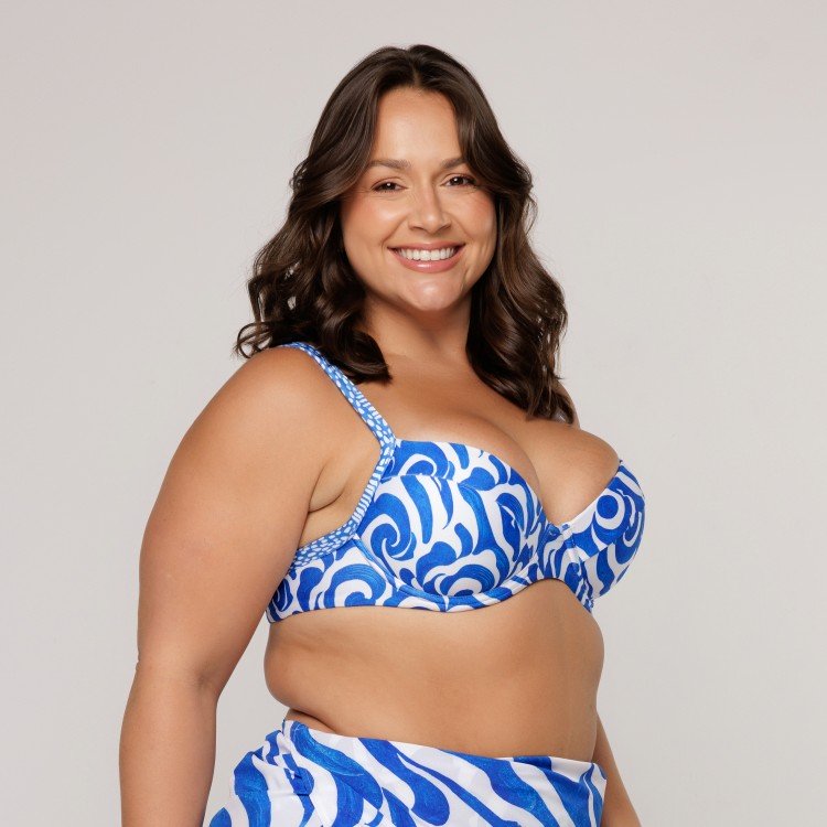 • Top Biquini Meia Taça Com Bojo Estampa Wave