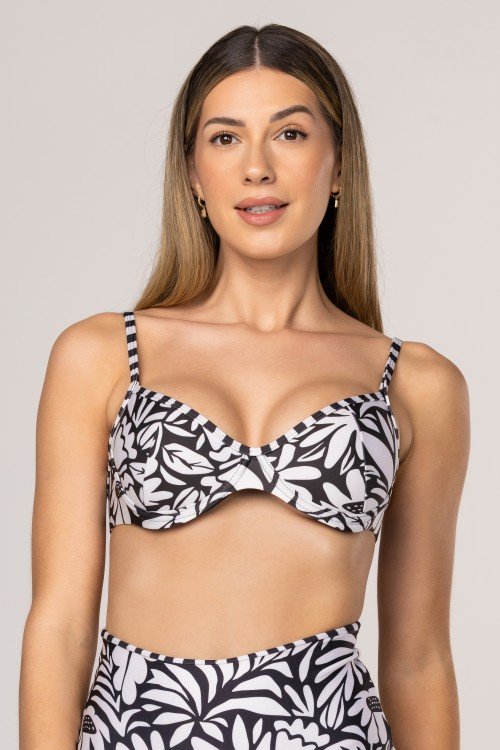 • Top Biquini Meia Taça Com Aro Estampa Orgânico