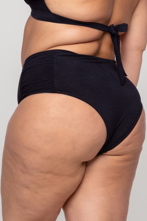 Calcinha Biquini Cintura Alta Com Franzido Preta