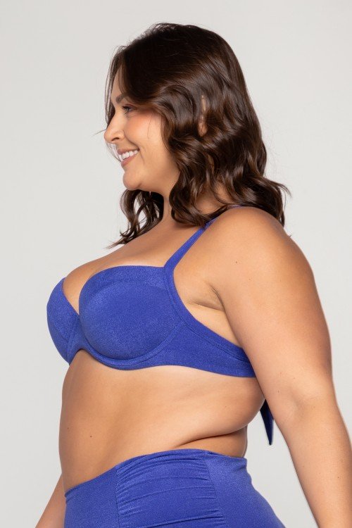• Calcinha Biquini Cintura Alta Com Franzido Azul