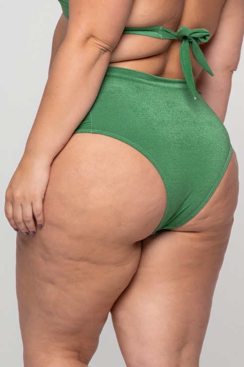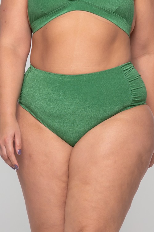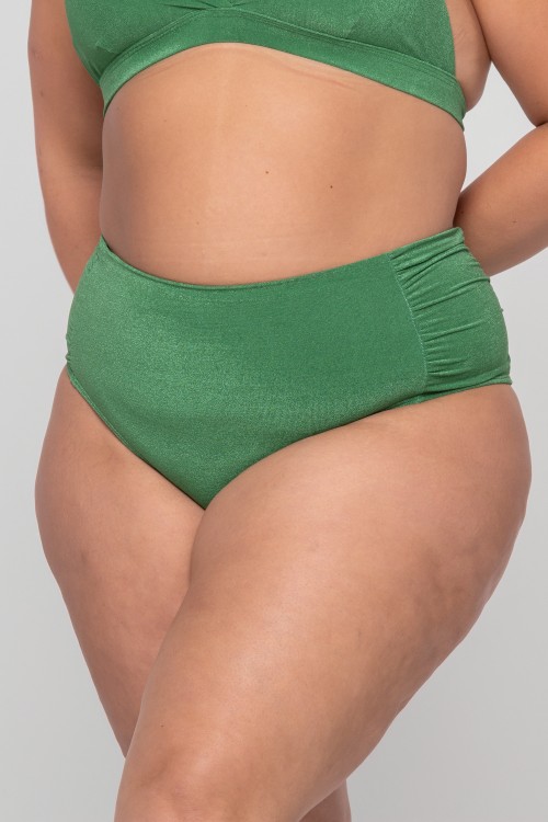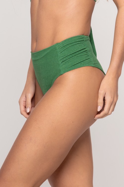 • Calcinha Biquini Cintura Alta Com Franzido Vd.Foliage