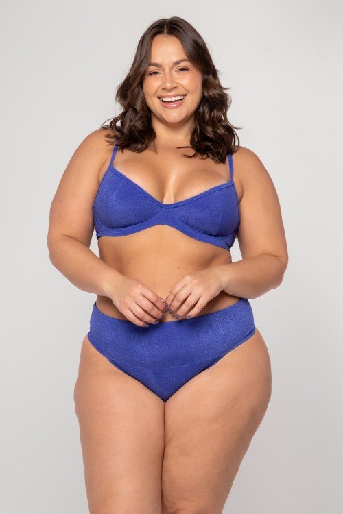• Saia Com Detalhe Franzido Na Lateral Azul Brilho