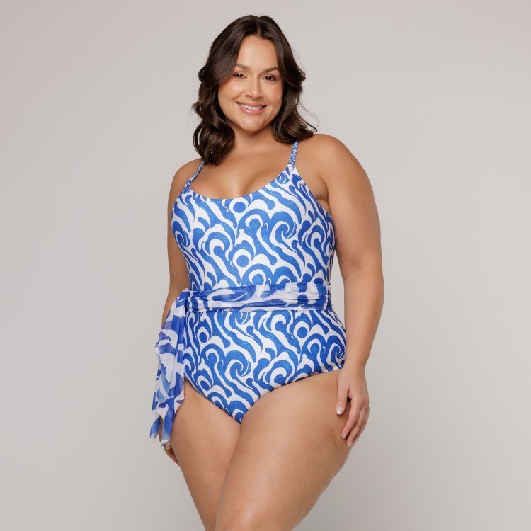 saída de praia com argola lateral estampa wave