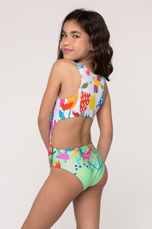 top biquini transpassado com bojo estampa botânica