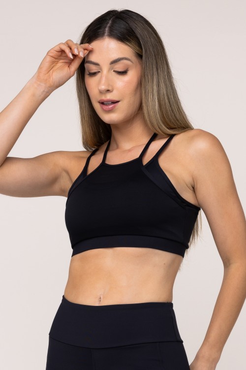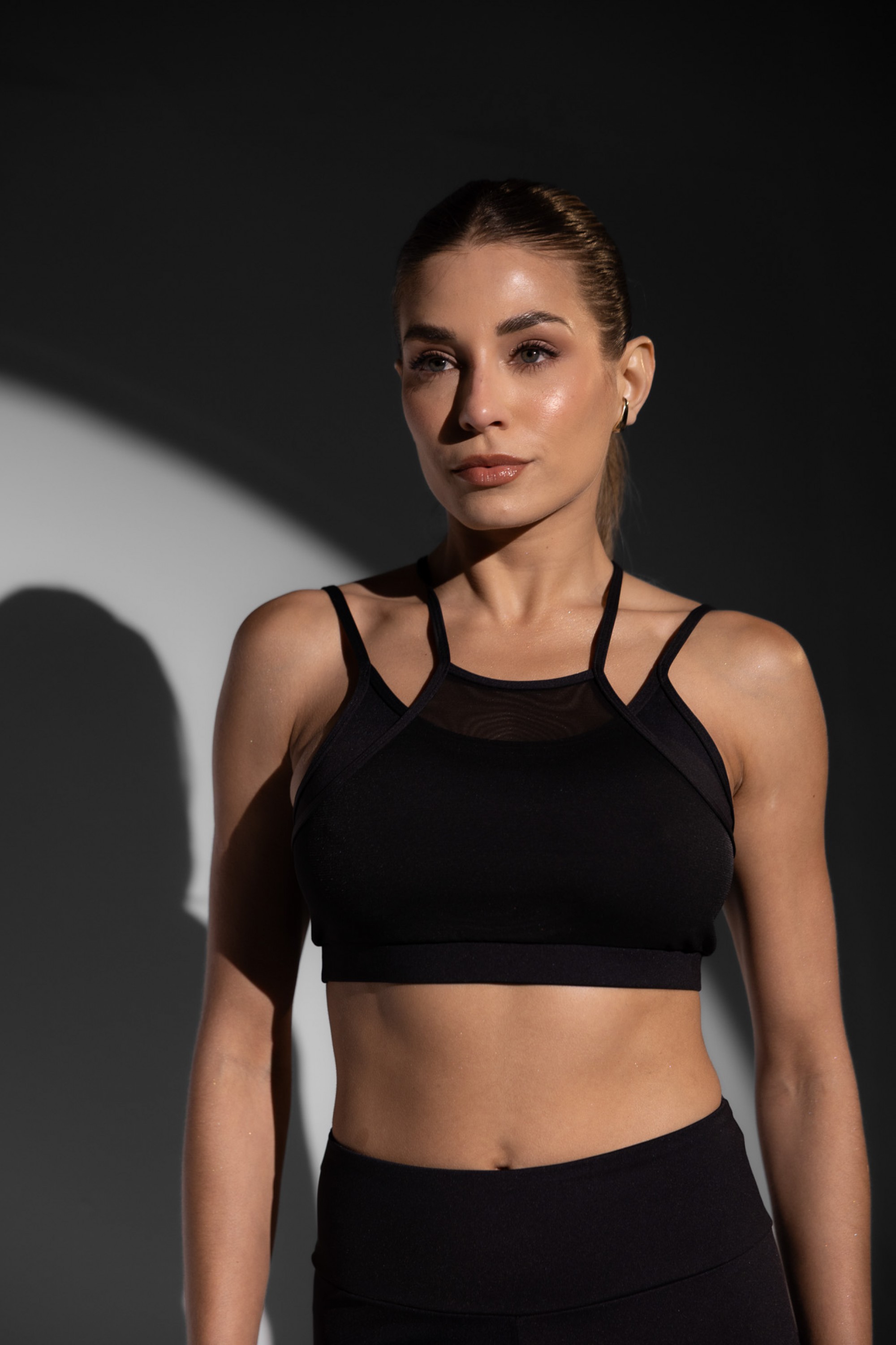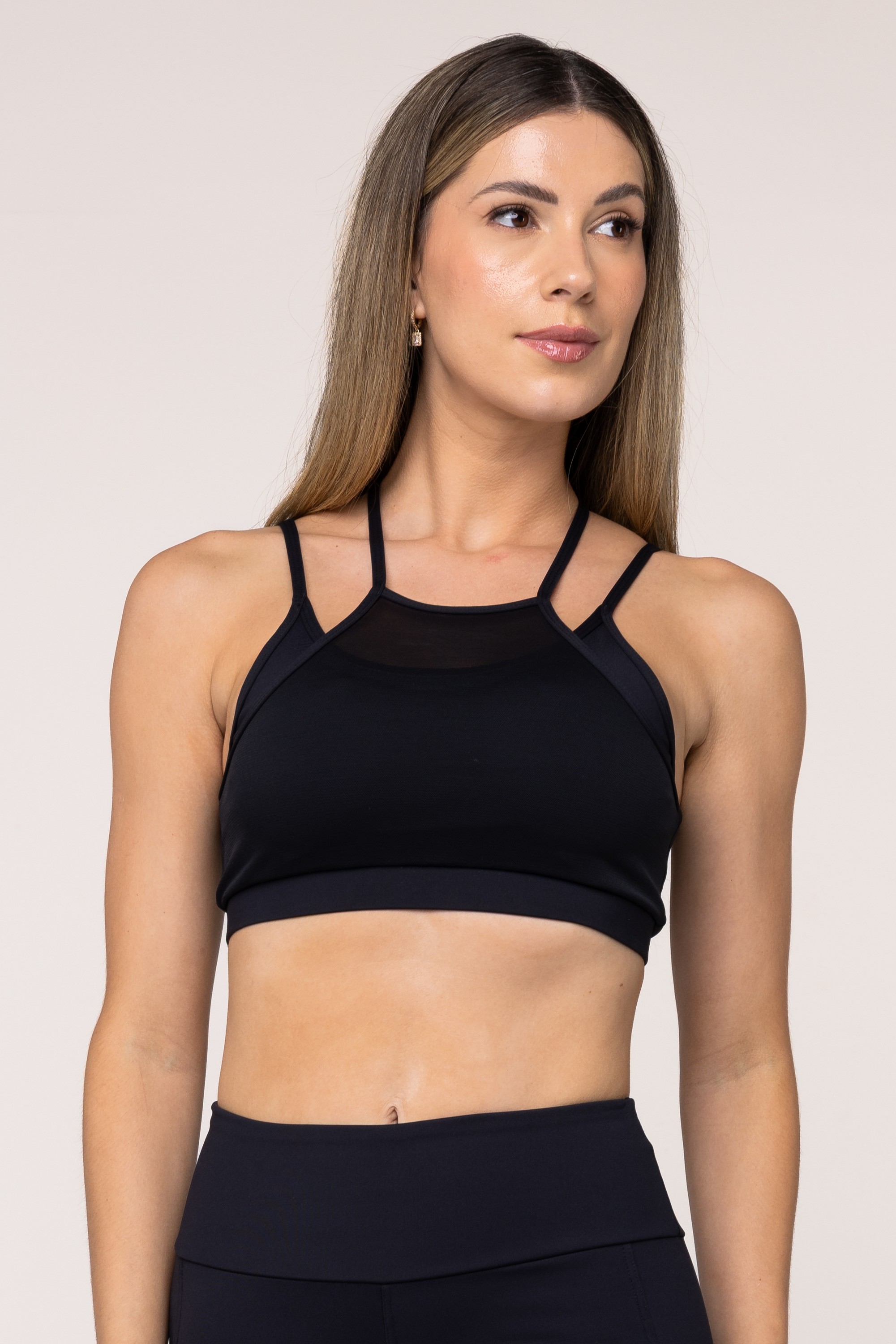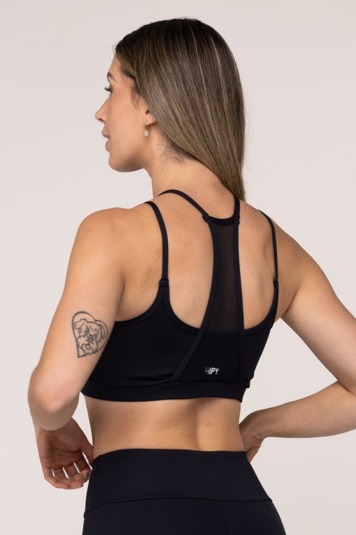 Camiseta Decote nas Costas e Detalhe em Tela Preto