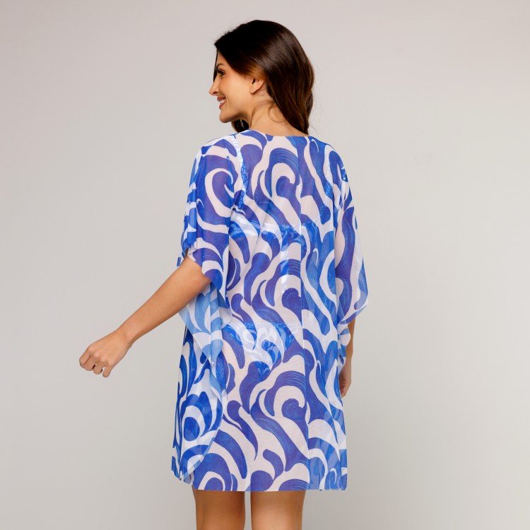 saia pareô transpassada curta estampa wave