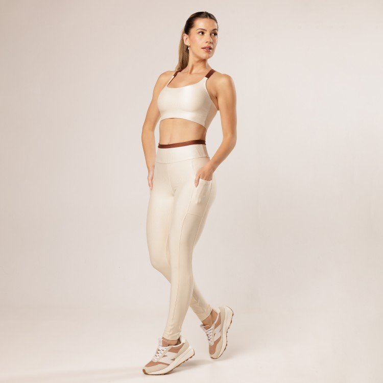• Calça Legging Preta Com Bolso e Pesponto Colorido