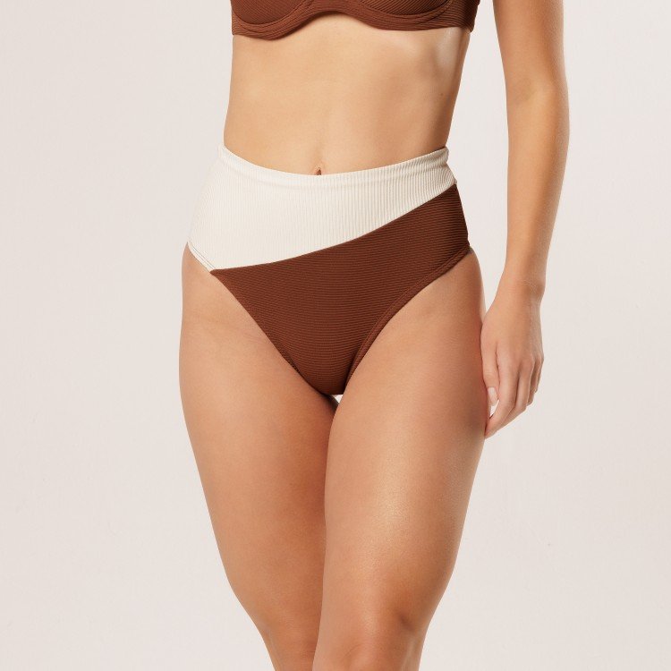 • Top Biquini Meia Taça Comfy Com Aro Canelado Marrom/Off