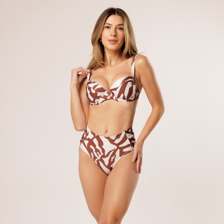 • Calcinha Biquini Cintura Alta Franzido Lateral Estampa Duna