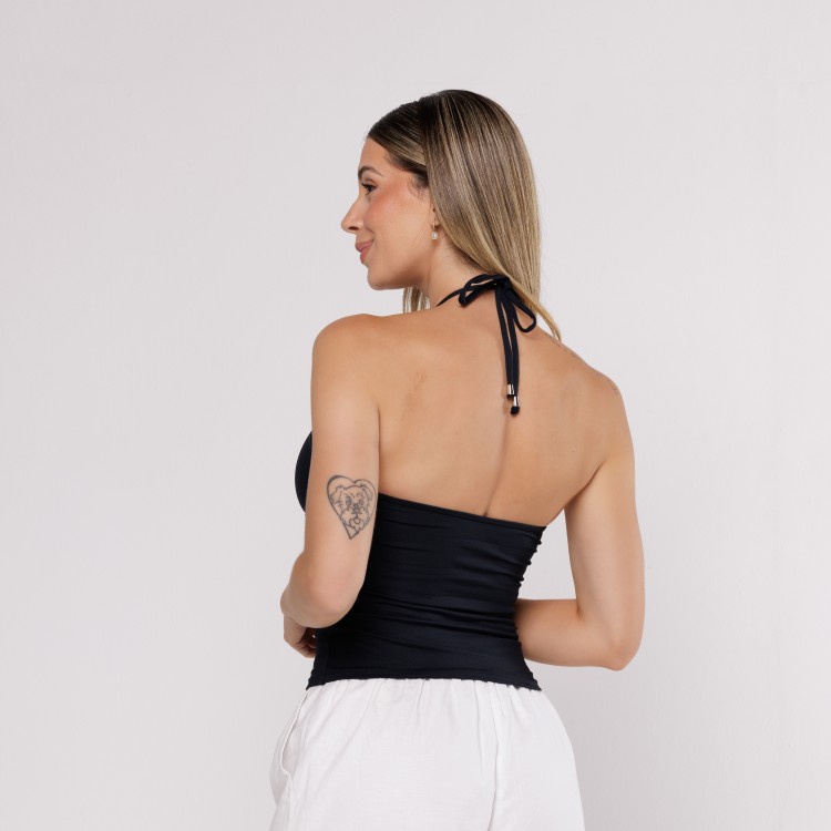 Blusa Detalhe nas Costas Viscose Cinza Mescla