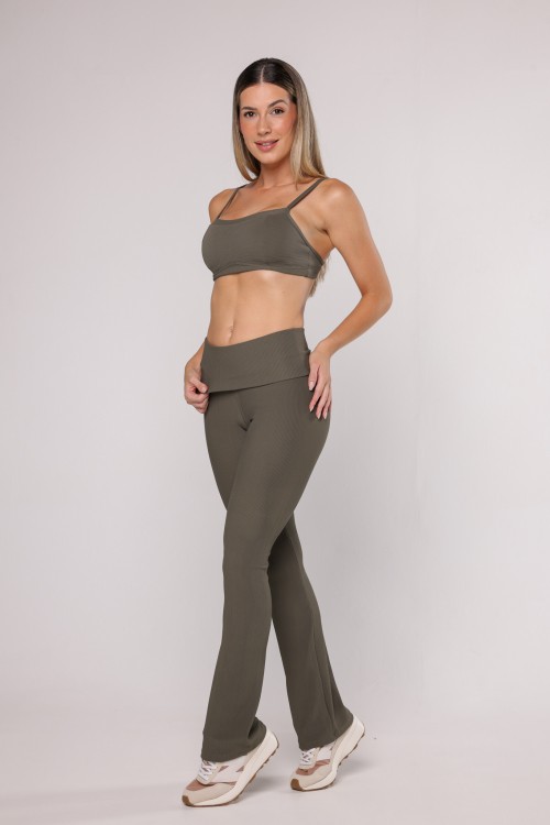 Top Fitness Alcinha Canelado Comfy Verde Escuro