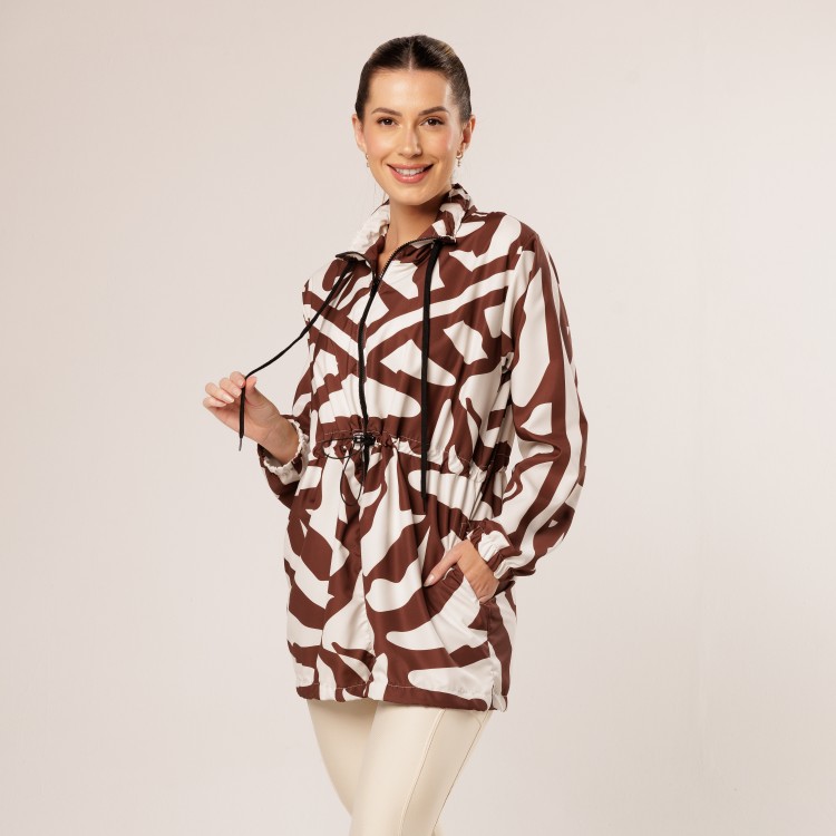 Camiseta Canelada Alongada Estampa Onça Floral E359