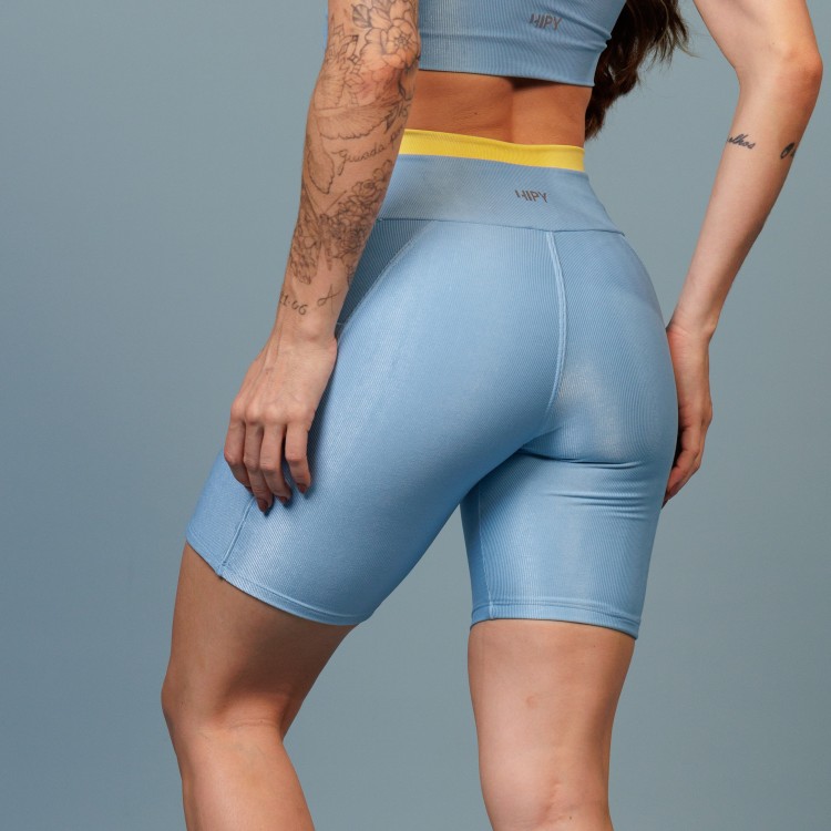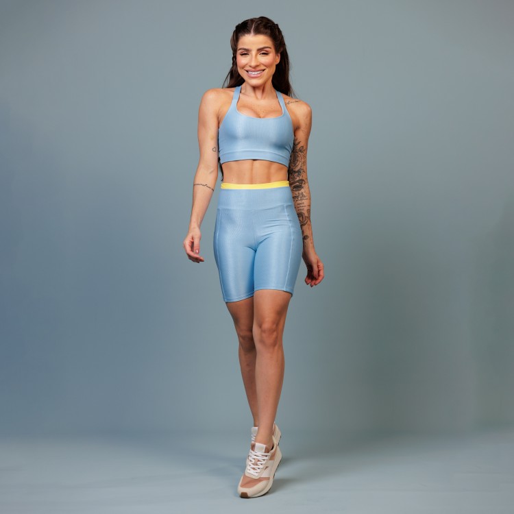 bermuda fitness com recortes e pesponto coloridos