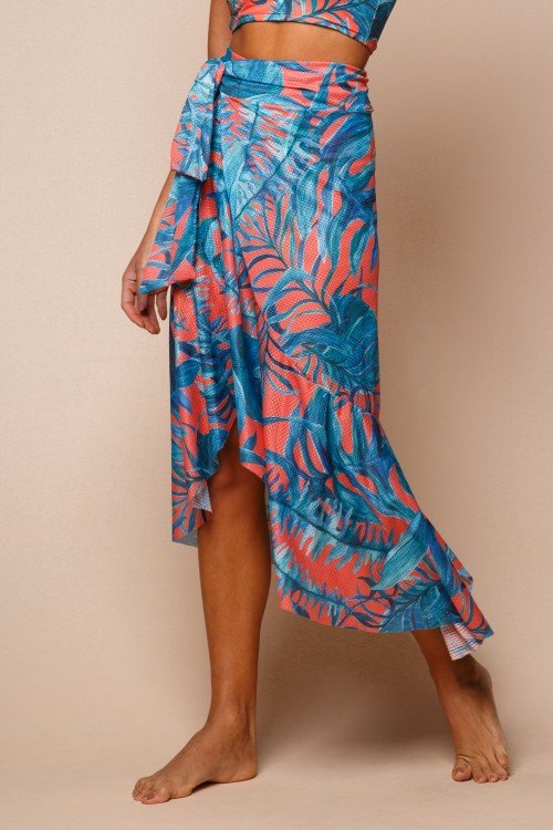 Saída de Praia Com Argola Lateral Estampa Orgânico