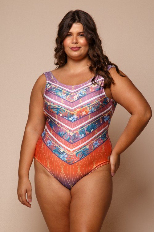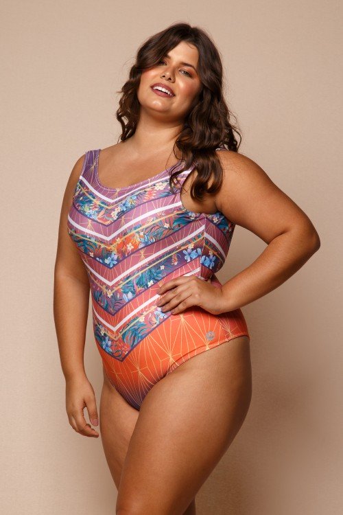body maiô sublimado com bojo removível e decote quadrado nas costas e estampa butterfly e222